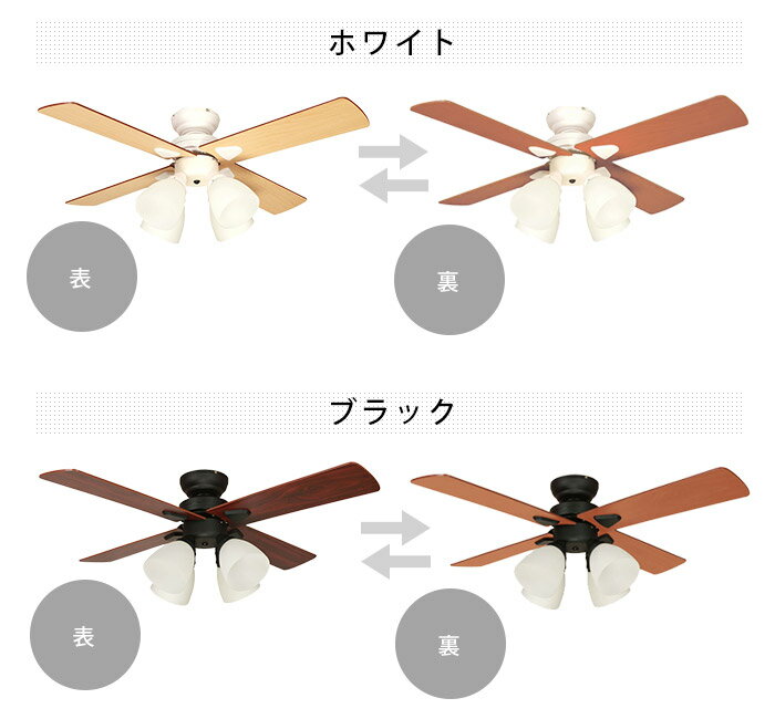 照明は4灯・2灯の切り替えが、ファンは回転方向を時計回り・反時計回りに切り替えと、 回転速度も3段階で切り替えができます。