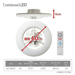【商品解説】天井空間を有効利用し年間を通して使用できる新しいデザインのシーリングライト調光調色機能を備えお部屋の空気循環まで合わせてできるサーキュレーターとの一体型●しっかり明るい4000ルーメン●夏季 「正回転」でファンの風がお部屋に届く●冬季 「逆回転」で下の空気を吸い込んで循環させる●取付簡単 軽量コンパクト設計●調光10段階 調色7段階●ファン風量切替 16段階【スペック】●型式:KCC08CM(DNL(KCC-08CM 調光・調色(昼光色〜電球色))●JANコード:4550283086193●サイズ:Φ600×厚み160●本体重量:4.0kg●リモコン:リモコン付き●消費電力:47W●付属品リモコン、リモコン用単4乾電池(お試し用)、リモコン取り付けネジ、配線器具固定ネジ、取付金具固定木ネジこの商品はDCC08CMと類似した商品です。