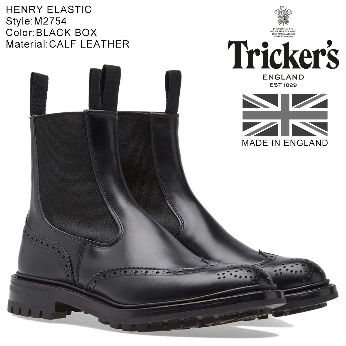 トリッカーズ TRICKER'S カントリーブーツコレクション 2508 マルトン ブラック 7穴フルブローグブーツ ブラックボックスカーフ ダイナイトソール